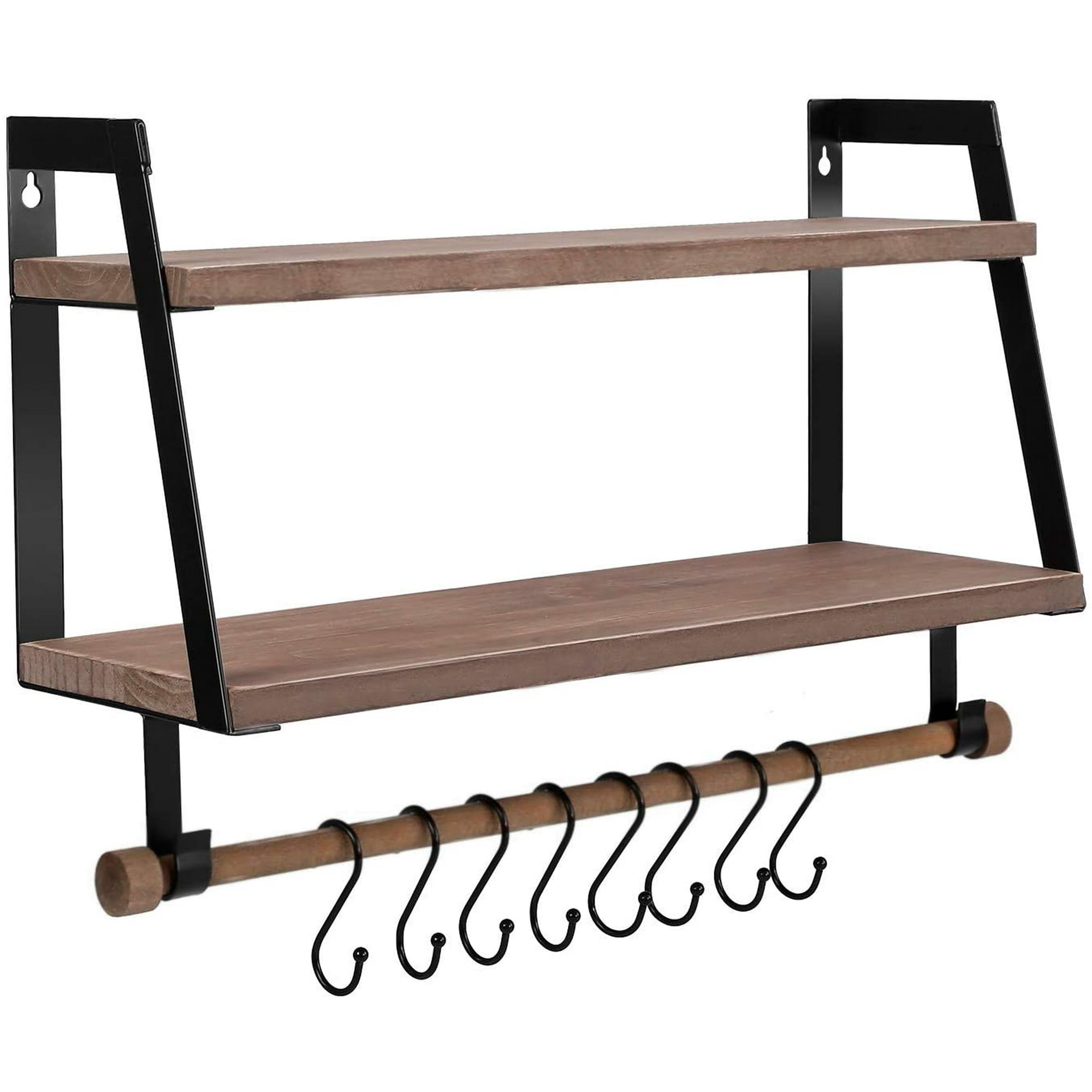 Wall Shelves Wood Storage Shelves With Towel Bar Floating Shelves Rustic 2 Tier Bathroom Shelf Kitchen Spice Rack With Hooks For Bathroom Kitchen Utensils Walmart Canada